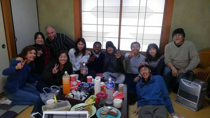 Our friend Denis from Nigeria. Crystal from Germany, Joy from Miyazaki and Paul one of our great musicians.